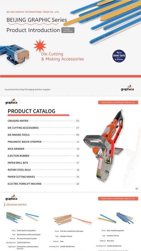 Η εταιρεία A1:Beijing Graphic Inte·l Trade ως επαγγελματίας κατασκευαστής ματρίδας πτυσσόμενης και μαχαιριού κοπής χαρτιού ιδρύθηκε το 2012, ειδικευμένη σε ματρίδες πτυσσόμενης,Μαχαίρι κοπής χαρτιού και τρυπάνι χαρτιού και πνευματική συσκευή απορρίψεως αποβλήτων και άλλα συναφή προϊόντα.